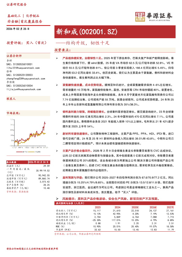 投资评级 香料 新材料 蛋氨酸 维生素