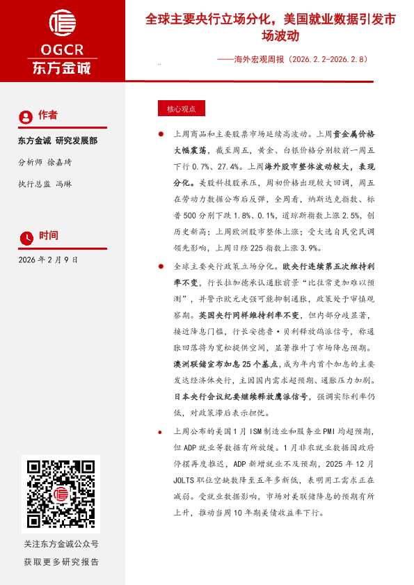 【东方金诚】【202602】全球主要央行立场分化,美国就业数据引发市场波动-11页