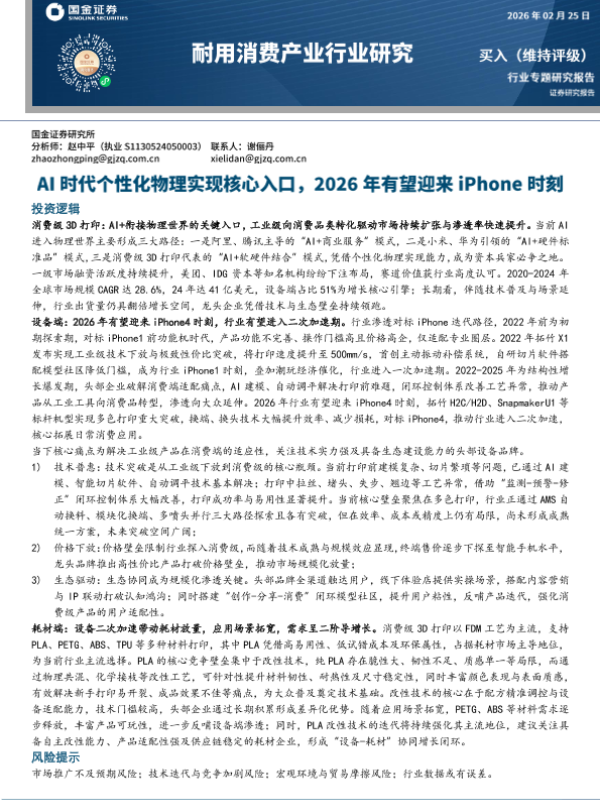 消费级设备 人工智能 智能制造 3D打印 AI+硬件
