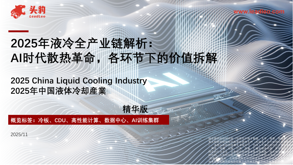 【头豹研究院】【202511】2025年液冷全产业链解析:AI时代散热革命,各环节下的价值拆解-11页