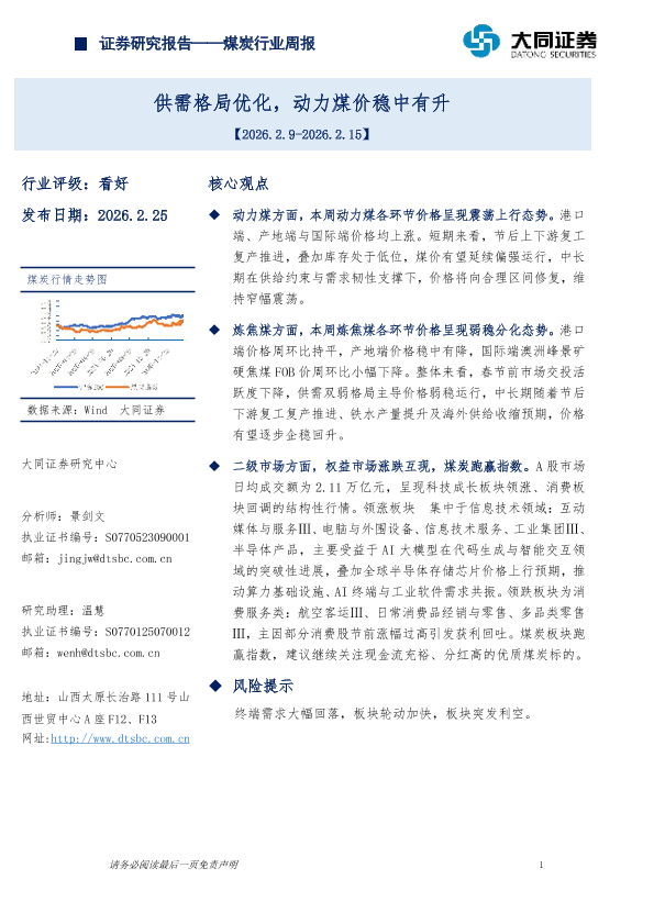【大同证券】【202602】煤炭行业周报:供需格局优化,动力煤价稳中有升-14页