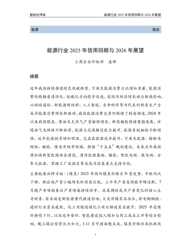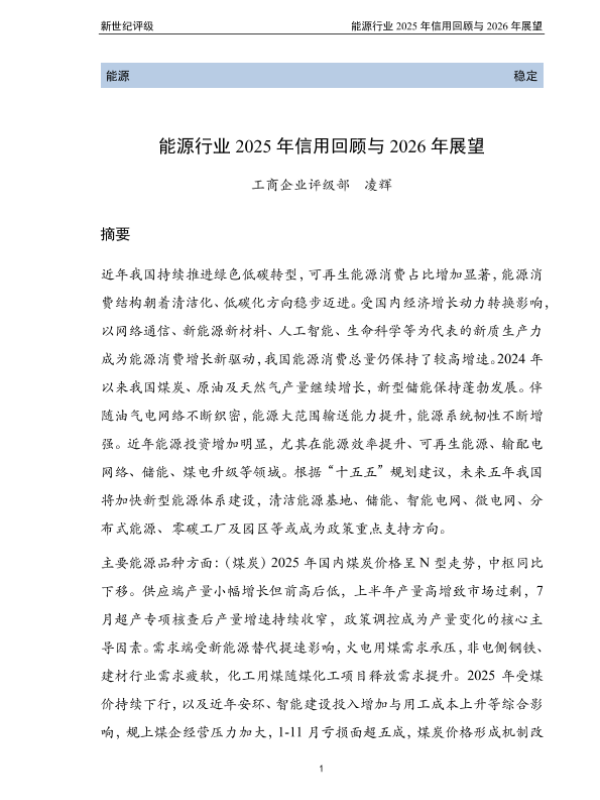 【新世纪评级】【2025】新世纪评级 能源行业 2025年信用回顾与 2026年展望-55页