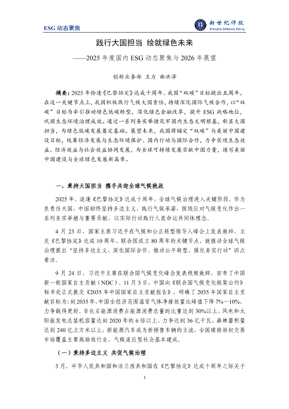 【新世纪评级】【2025】2025年度国内 ESG动态聚焦与 2026年展望-9页