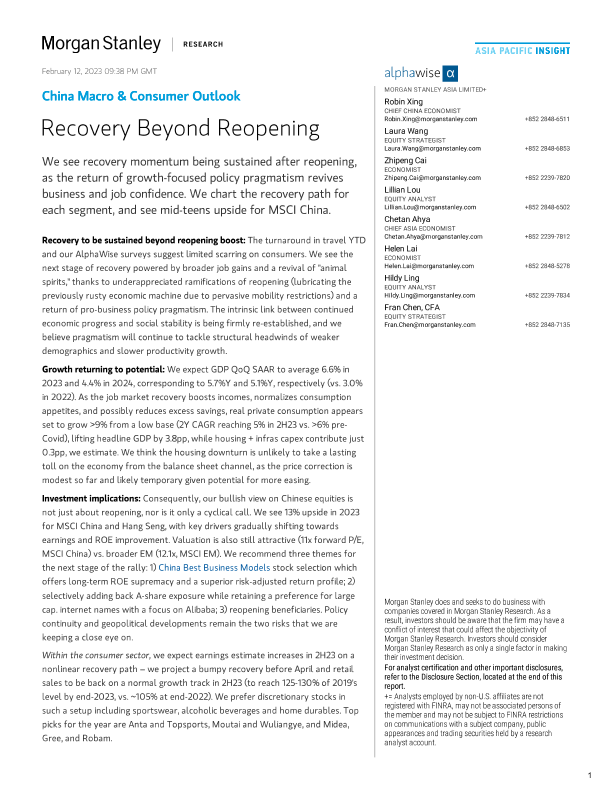 【Morgan Stanley】【20230212】China Macro & Consumer Outlook Recovery Beyond Reopening-46页