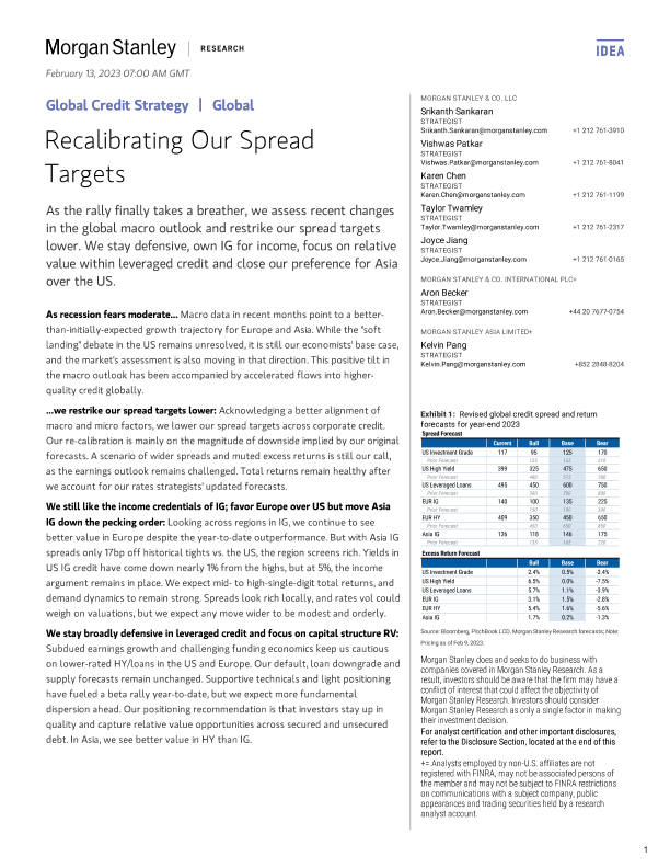 【Morgan Stanley】【20230213】Global Credit Strategy Recalibrating Our Spread Targets-29页