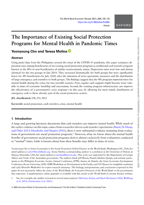 【World Bank】【2025】The Importance of Existing Social Protection Programs for Mental Health in Pandemic Times-20页