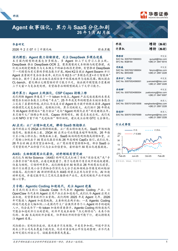 【华泰证券】【202602】Agent叙事强化,算力与SaaS分化加剧26年1月 AI月报-30页