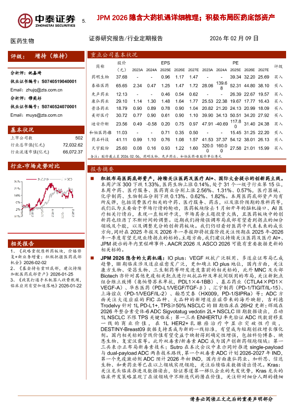 【中泰证券】【202602】医药生物行业:JPM+2026隐含大药机遇详细梳理;积极布局医药底部资产-15页