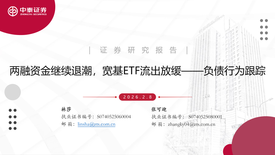【中泰证券】【202602】两融资金继续退潮,宽基ETF流出放缓——负债行为跟踪-26页