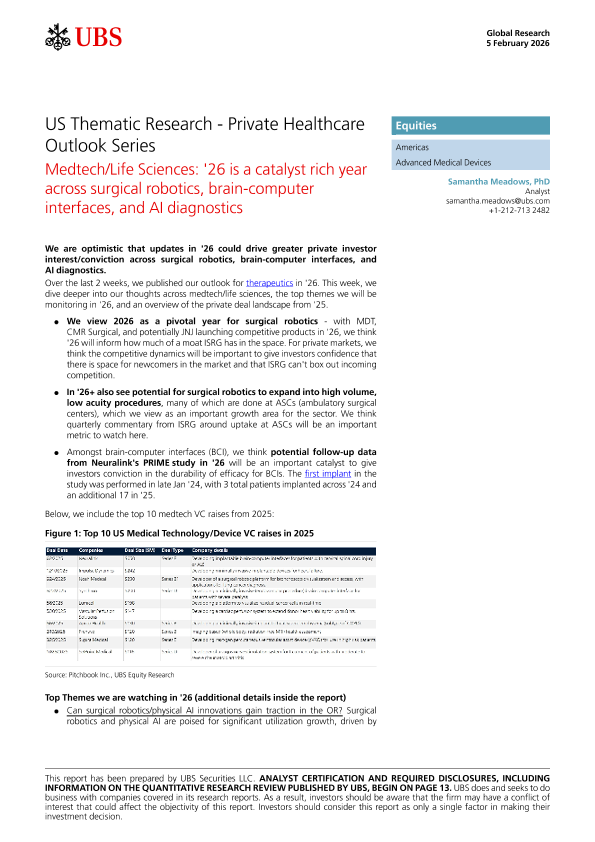 【UBS】【2026】US Thematic Research - Private Healthcare Outlook Series Medtech/Life Sciences-21页