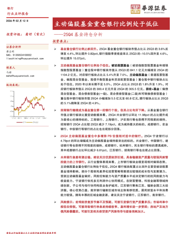 【华源证券】【202512】银行业25Q4基金持仓分析:主动偏股基金重仓银行比例处于低位-13页