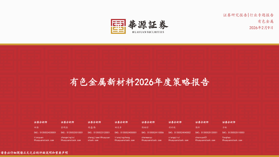 【华源证券】【202602】有色金属新材料2026年度策略报告-68页