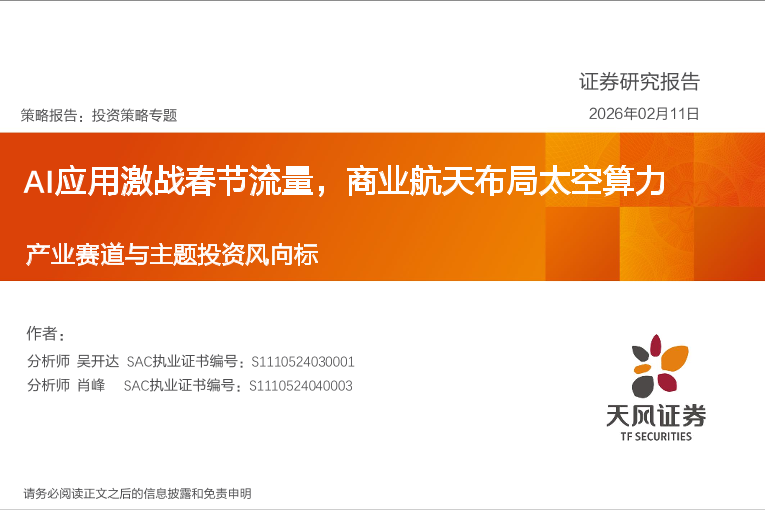 【天风证券】【202602】产业赛道与主题投资风向标:AI应用激战春节流量,商业航天布局太空算力-48页