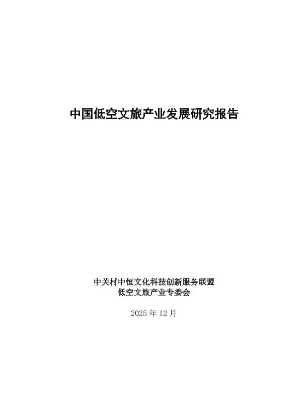 【中关村中恒文化科技创新服务联盟 低空文旅产业专委会】【202512】中国低空文旅产业发展研究报告-102页