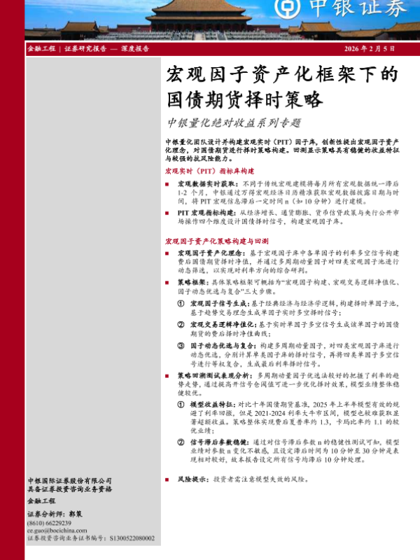 【中银证券】【202602】宏观因子资产化框架下的国债期货择时策略-22页