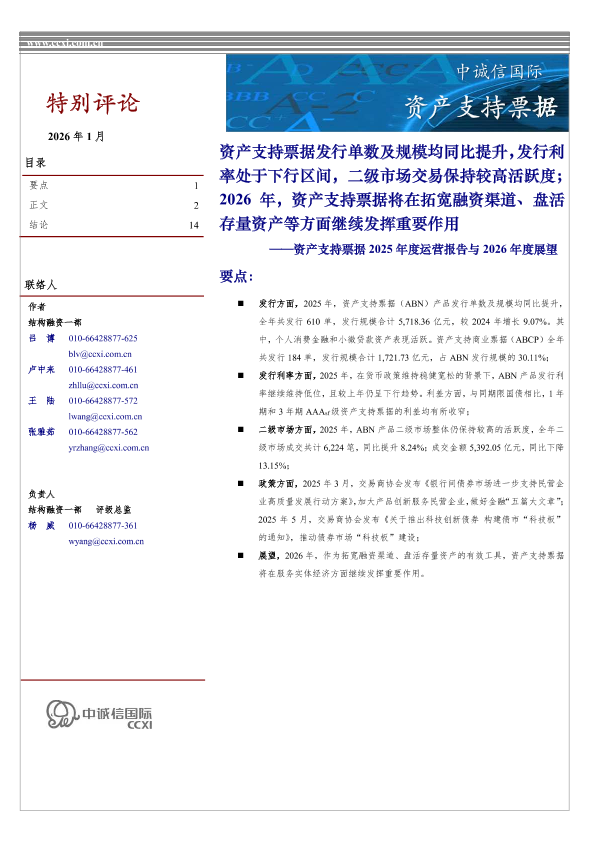 【中诚信国际】【202602】资产支持票据 2025年度运营报告与 2026年度展望-15页