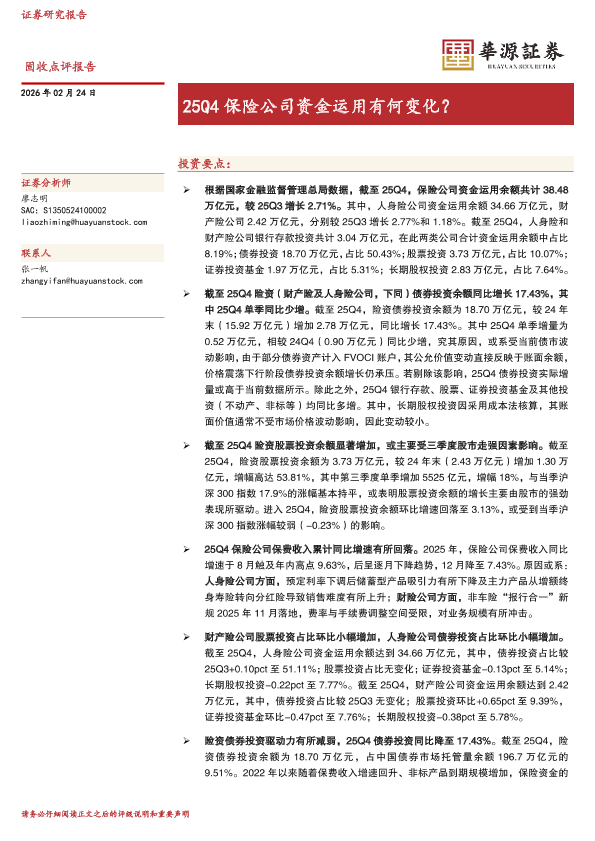 【华源证券】【2025】25Q4保险公司资金运用有何变化?-6页