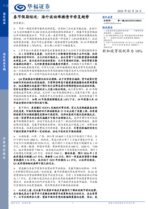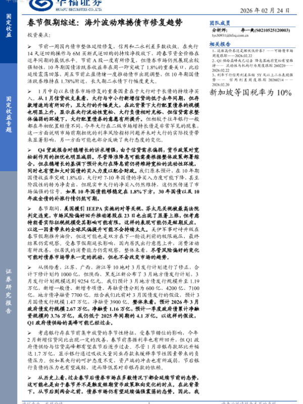 【华福证券】【202602】春节假期综述:海外波动难撼债市修复趋势-21页