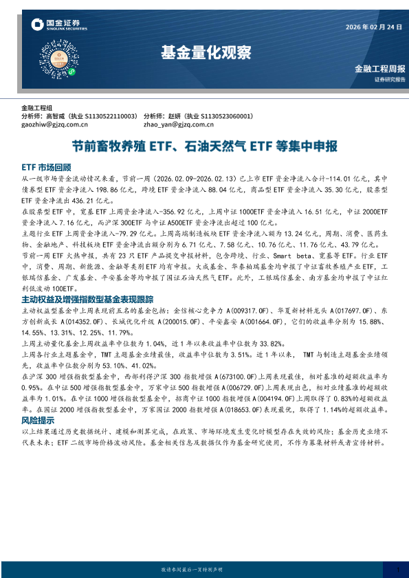 畜牧养殖 ETF 石油天然气 行业研究 基金发行