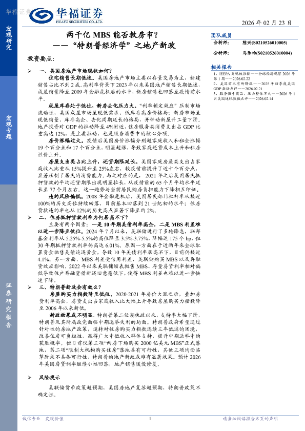 【华福证券】【202602】两千亿 MBS能否救房市?——“特朗普经济学”之地产新政-16页