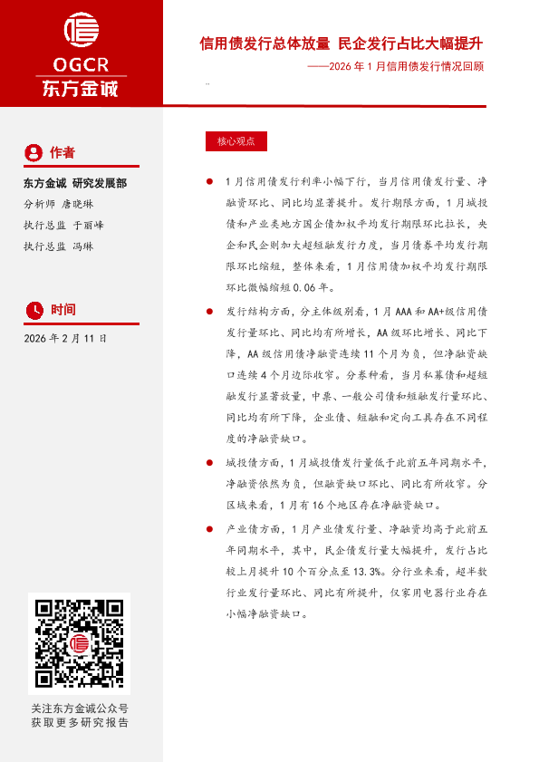 【东方金诚】【202602】2026年1月信用债发行情况回顾-14页
