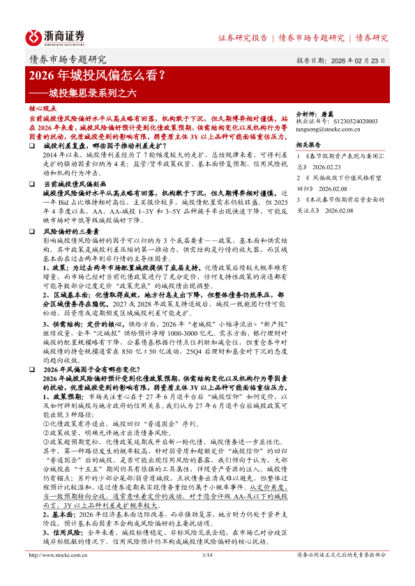 【浙商证券】【202602】2026年城投风偏怎么看?——城投集思录系列之六-14页