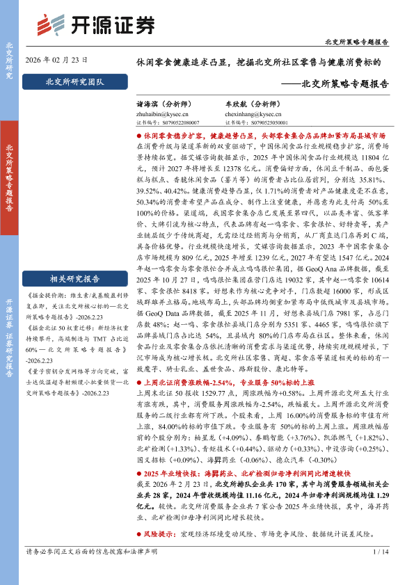 【开源证券】【202602】掘金休闲零食健康追求凸显,挖掘北交所社区零售与健康消费标的-14页