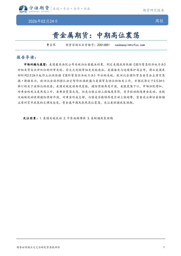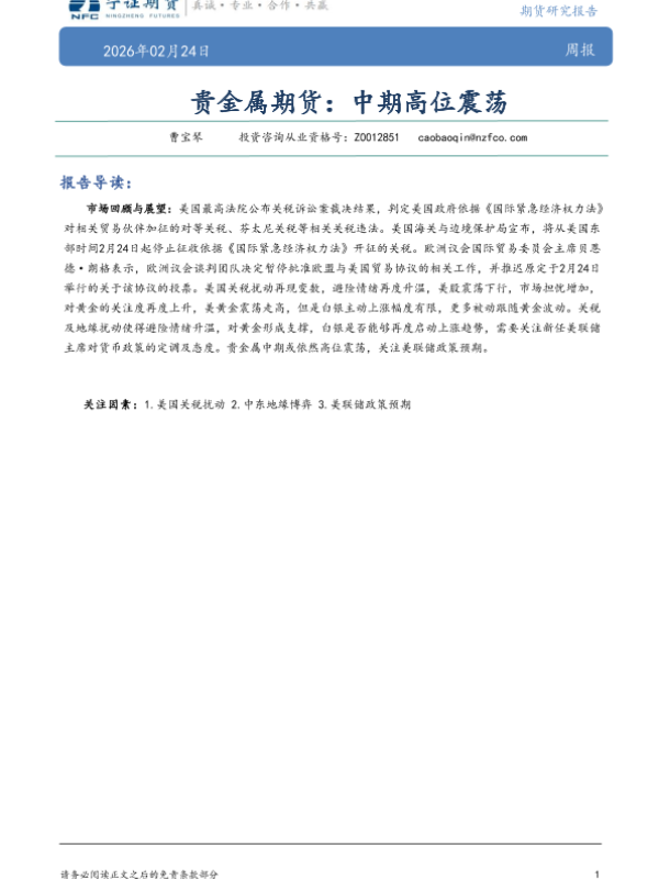 【宁证期货】【202602】贵金属期货:中期高位震荡-6页