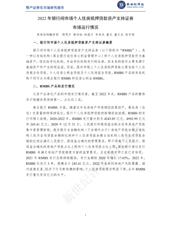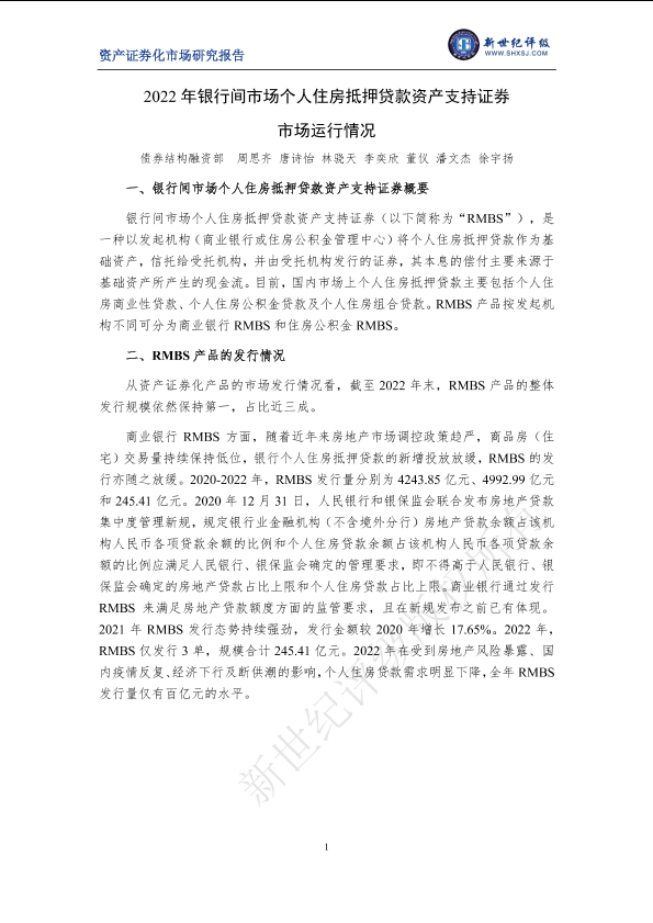 RMBS 个人住房抵押贷款 资产支持证券 金融市场 银行间市场