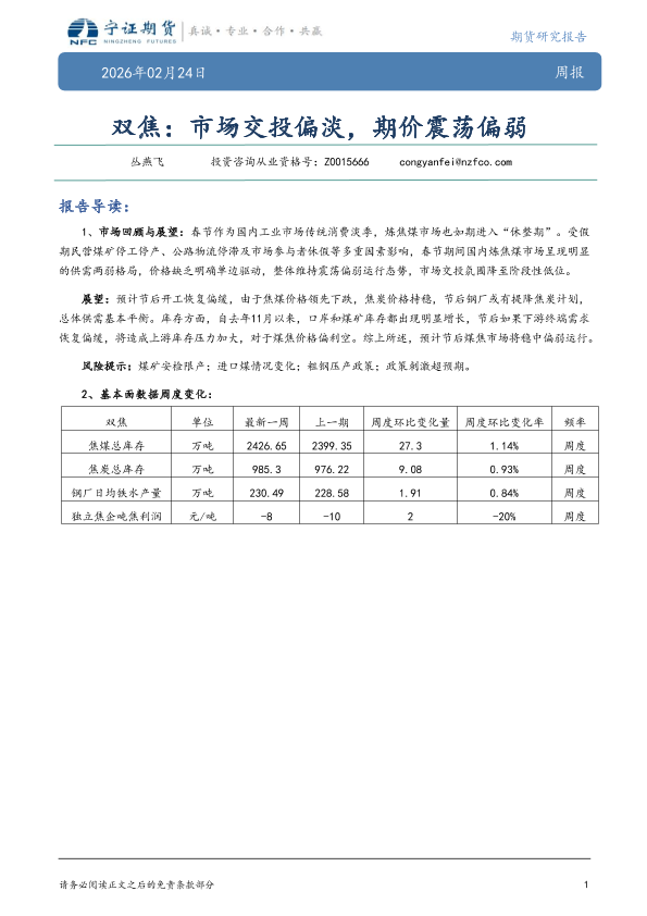 【宁证期货】【202602】双焦:市场交投偏淡,期价震荡偏弱-5页