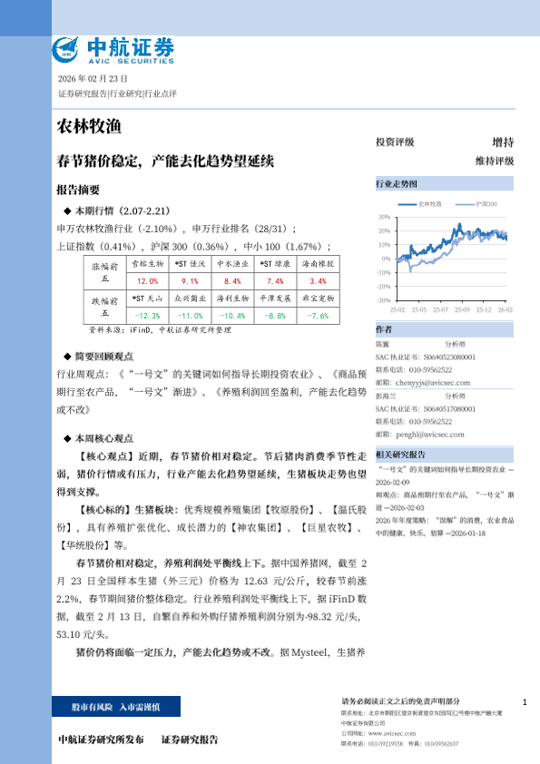 【中航证券】【202302】农林牧渔_春节猪价稳定_产能去化趋势望延续-13页
