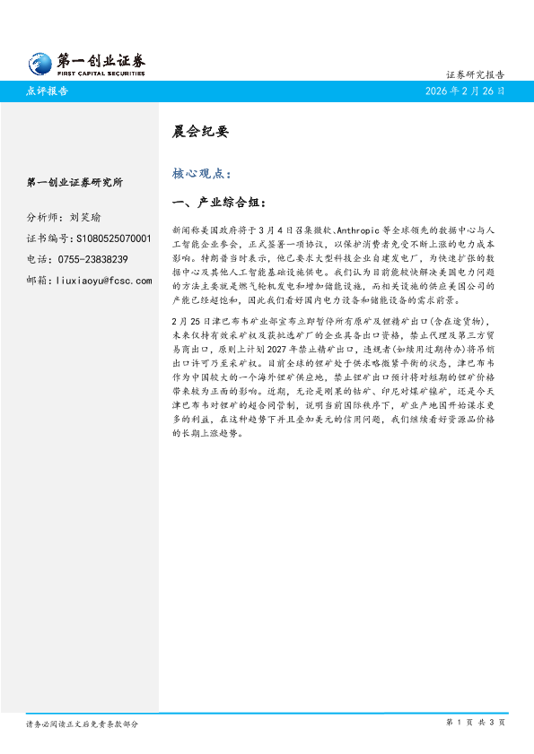 【第一创业证券】【202602】晨会纪要-3页