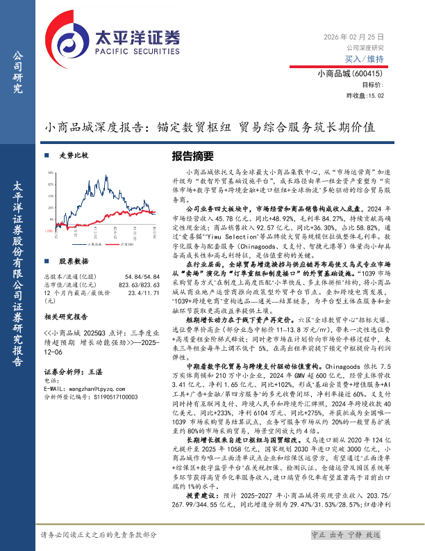 【太平洋证券】【202502】小商品城深度报告:锚定数贸枢纽贸易综合服务筑长期价值-33页