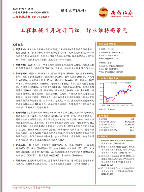 【西南证券】【202602】工程机械1月迎开门红,行业维持高景气-13页