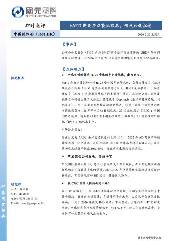 【国元国际】【202602】即时点评 SM17新适应症获批临床,研发加速推进-3页