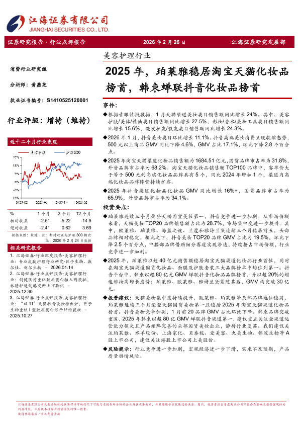 【江海证券】【2025】美容护理行业_2025年_珀莱雅稳居淘宝天猫化妆品榜首_韩束蝉联抖音化妆品榜首-3页