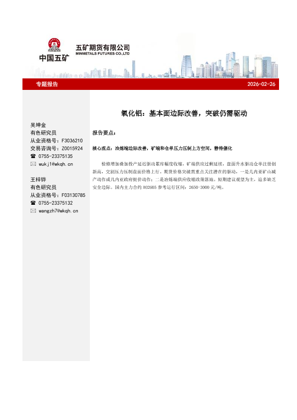 【五矿期货】【202602】氧化铝:基本面边际改善,突破仍需驱动-5页