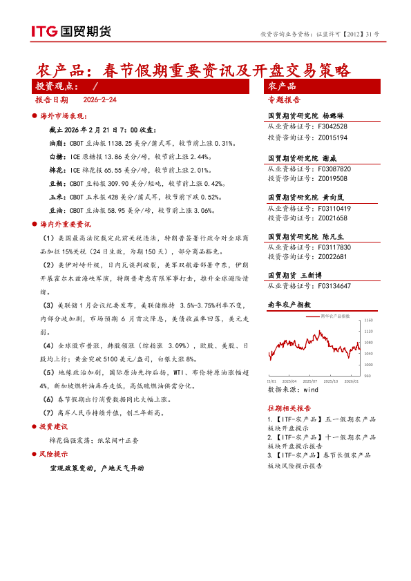 【国贸期货】【202602】农产品_春节假期重要资讯及开盘交易策略-6页