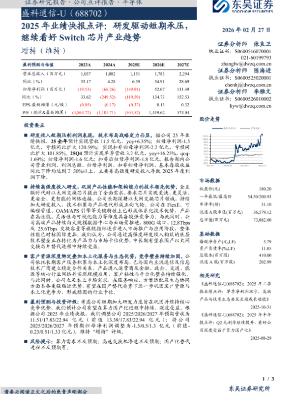 【东吴证券】【202602】2025年业绩快报点评:研发驱动短期承压,继续看好Switch芯片产业趋势-3页