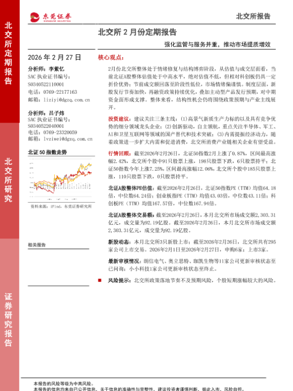 【东莞证券】【202602】北交所2月份定期报告:强化监管与服务并重,推动市场提质增效-10页