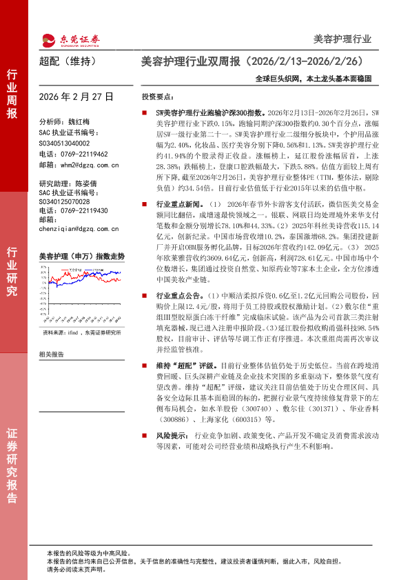 【东莞证券】【202602】美容护理行业双周报(2026/2/13-2026/2/26):全球巨头织网,本土龙头基本面稳固-8页