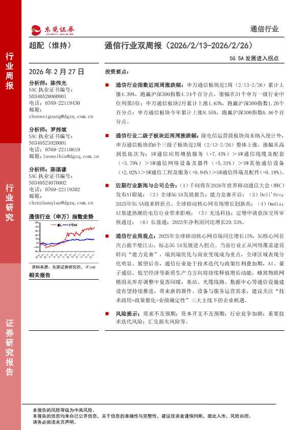 【东莞证券】【202602】通信行业双周报(2026/2/13-2026/2/26)-11页