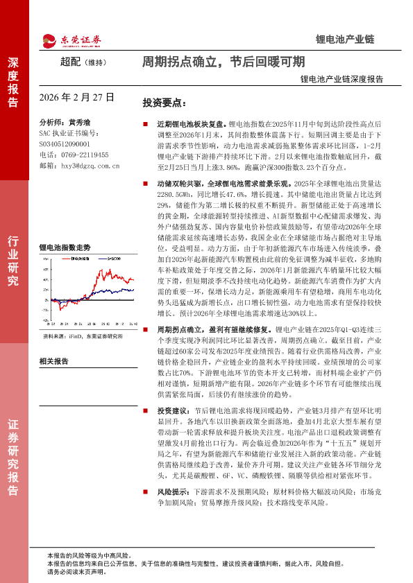 【东莞证券】【202602】锂电池产业链深度报告:周期拐点确立,节后回暖可期-18页