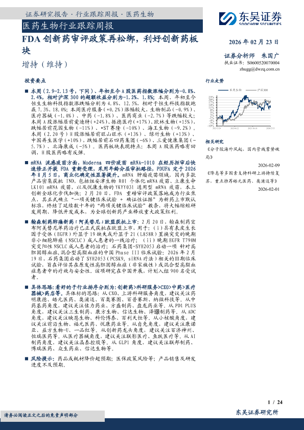 【东吴证券】【202602】FDA创新药审评政策再松绑,利好创新药板块-24页