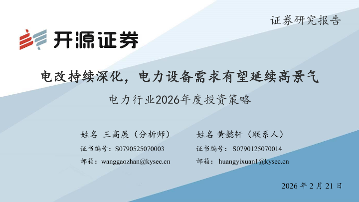【开源证券】【202602】电改持续深化,电力设备需求有望延续高景气-51页