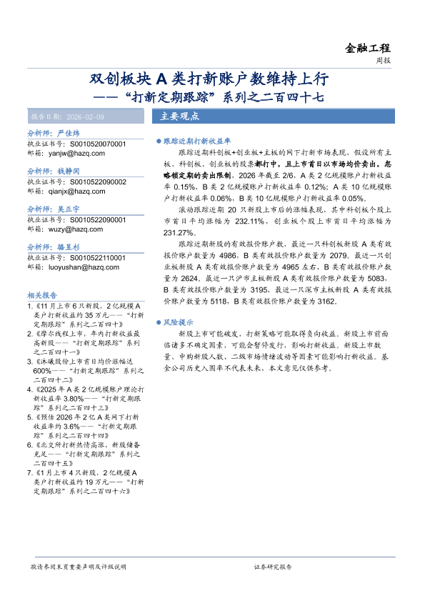【华安证券】【202602】双创板块A类打新账户数维持上行——“打新定期跟踪”系列之二百四十七-14页