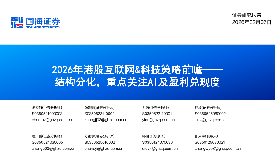 【国海证券】【202602】2026年港股互联网&科技策略前瞻—— 结构分化,重点关注A I及盈利兑现度-23页