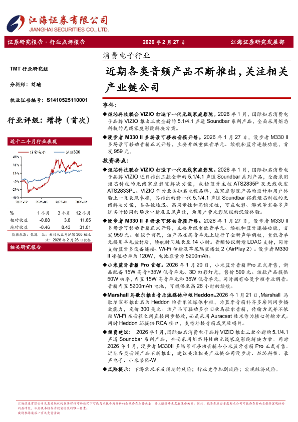 【江海证券】【202602】消费电子行业_近期各类音频产品不断推出_关注相关产业链公司-3页