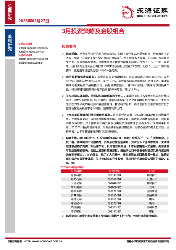 【东海证券】【202602】3月投资策略及金股组合-6页