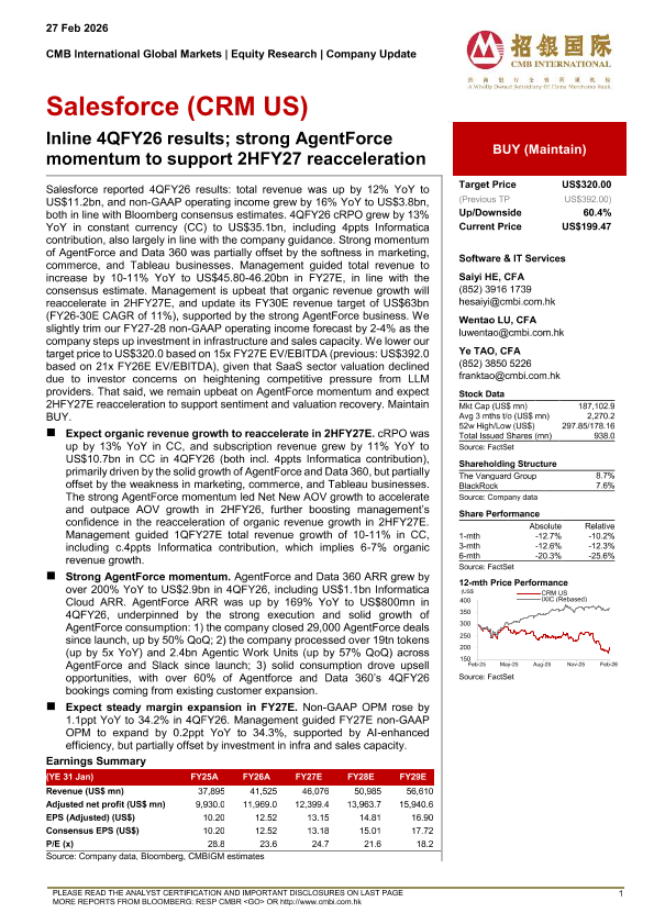 【CMB International Global Markets】【202602】Inline 4QFY26 results; strong AgentForce momentum to support 2HFY27 reacceleration-6页